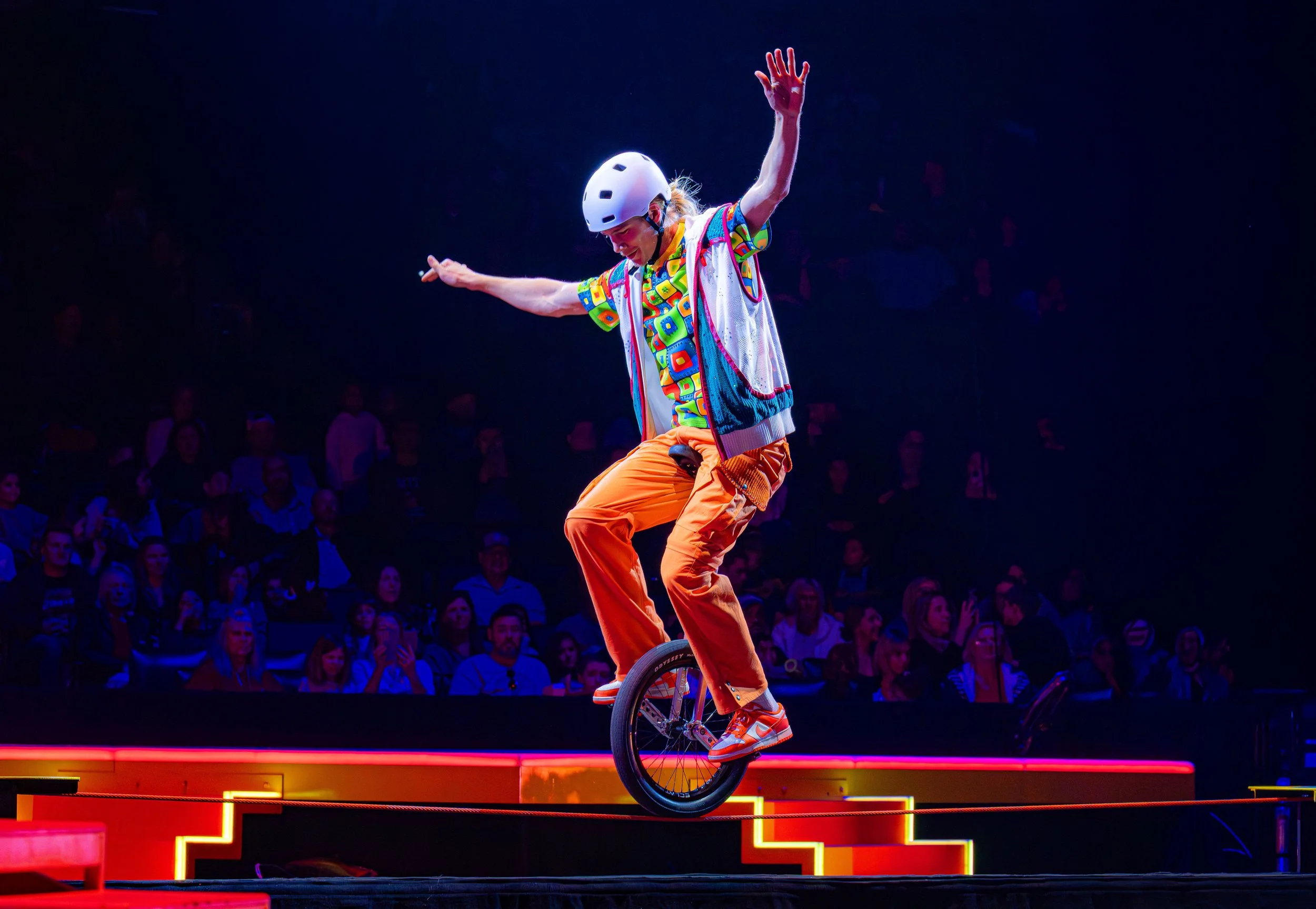 Mimo gained stage experience at a very young age, beginning his unicycling performances at just 12 years old. Drawing on 17 years of experience in extreme unicycling and multiple world champion titles, he has developed his current shows into a breathtaking act that seamlessly blends athleticism with artistic expression.